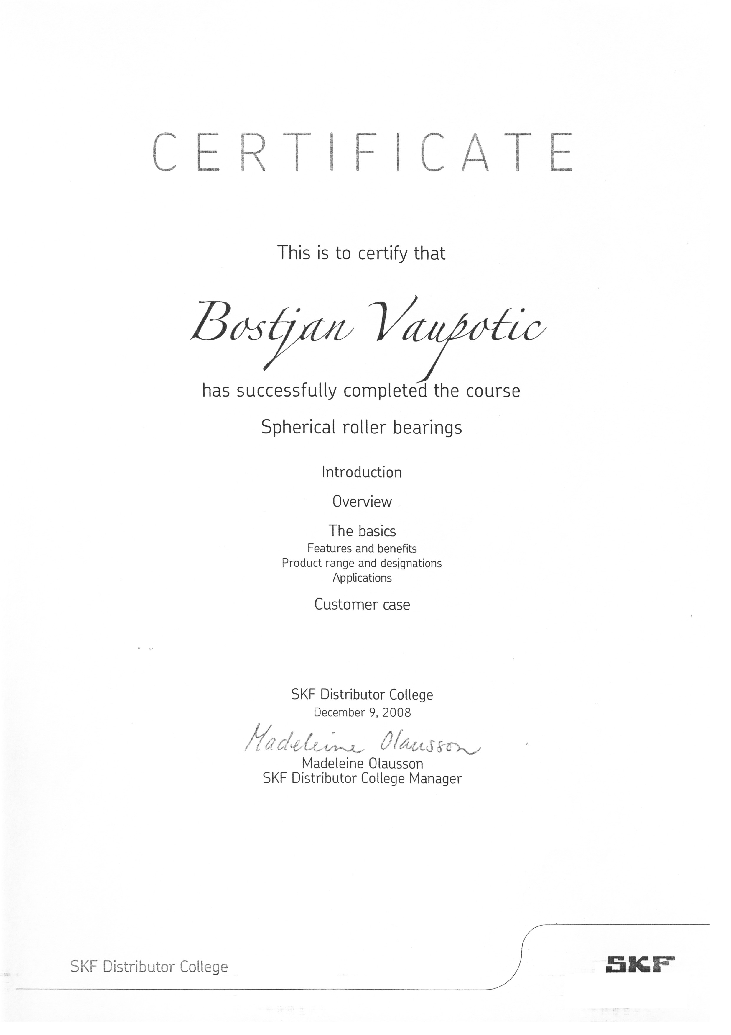 SKF Certifikati